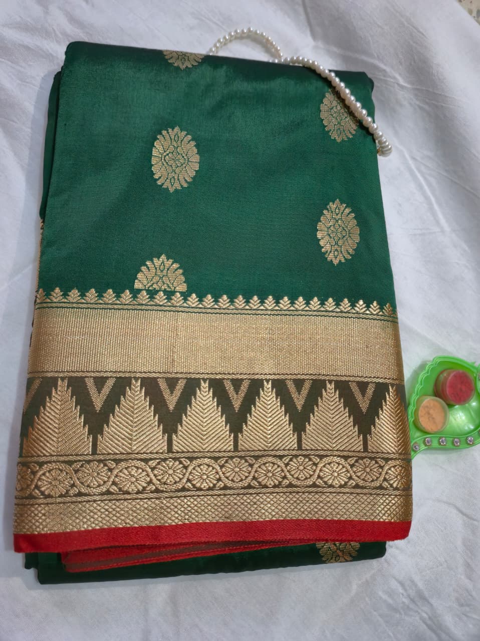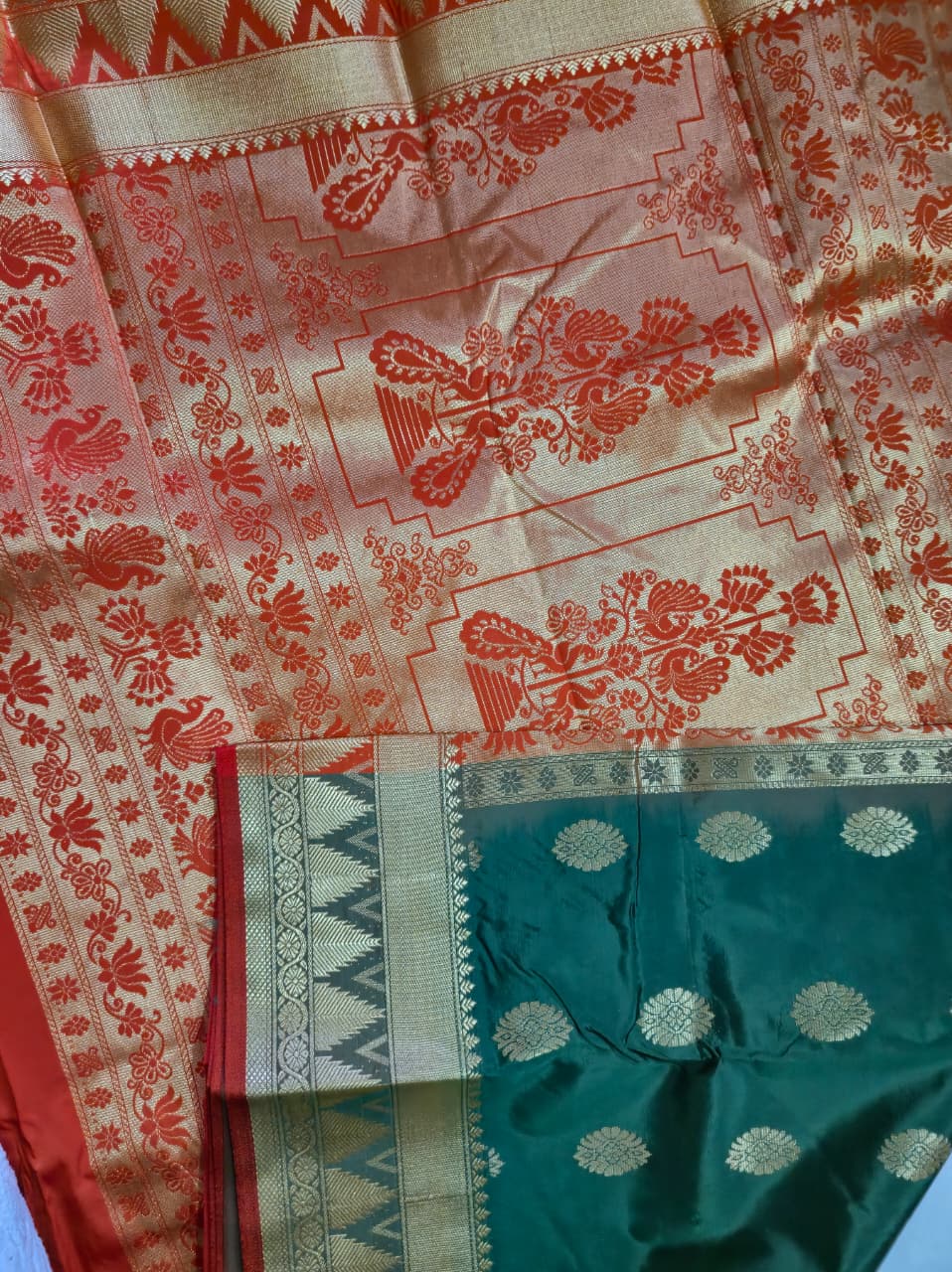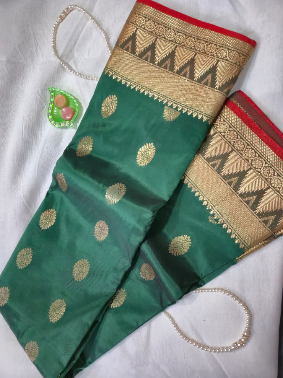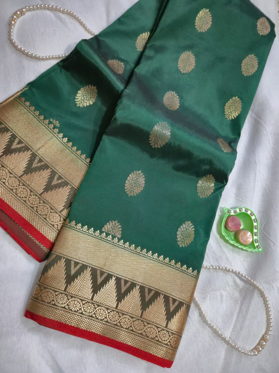 Art silk, Temple Border, Paithani Pallu.(Red Colour)
